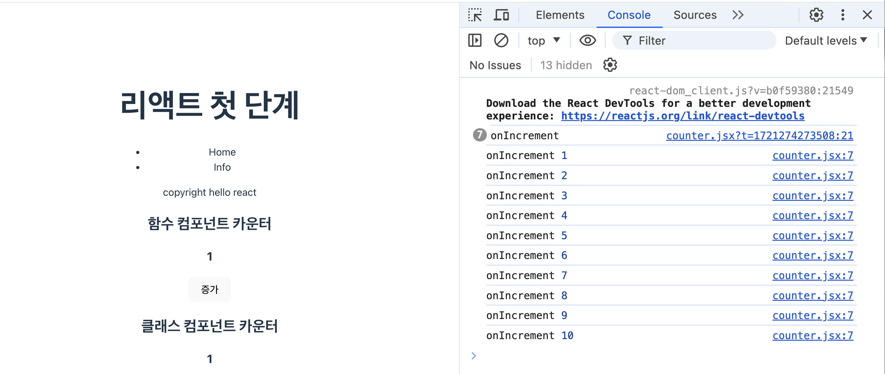 버튼 클릭 시 정상적으로 숫자 증가