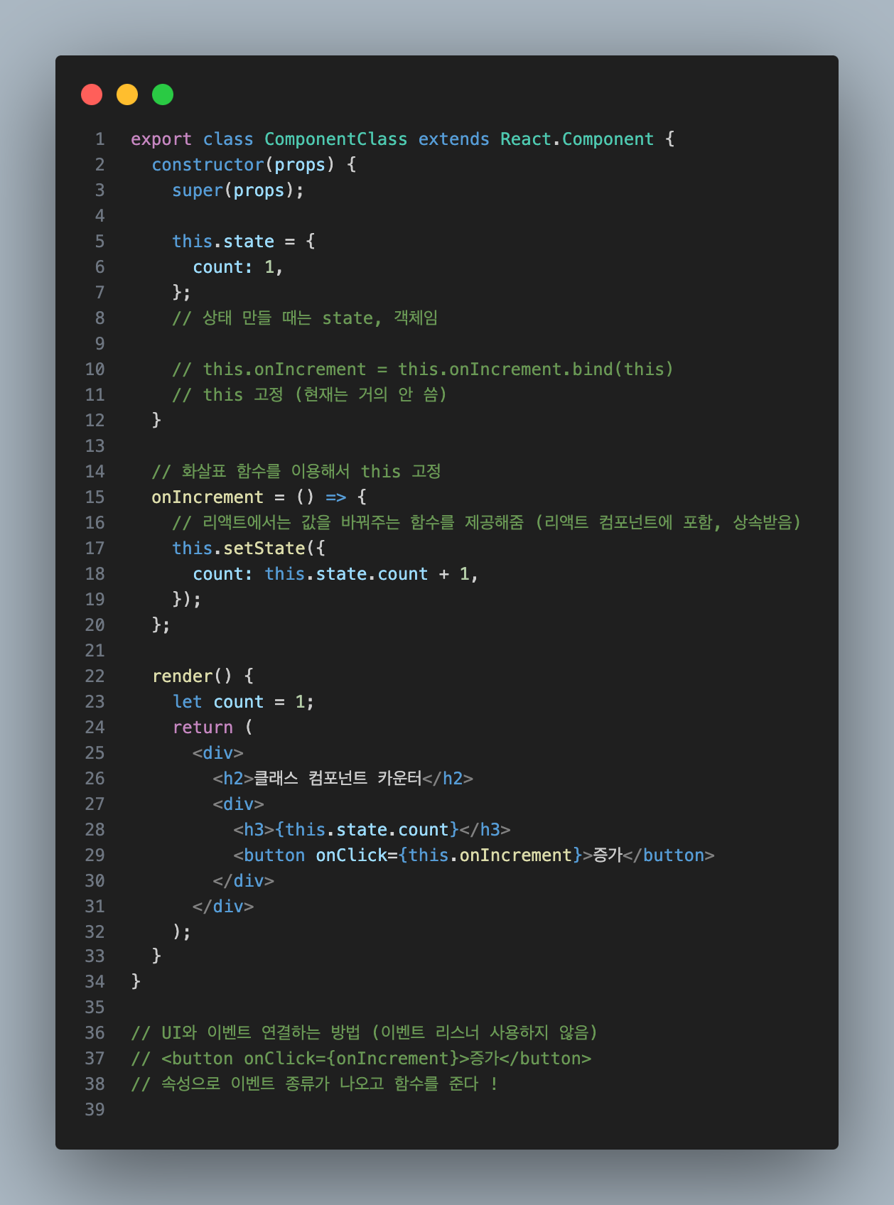 --> 최근에 들어서는 클래스 컴포넌트는 잘 쓰지 않음.