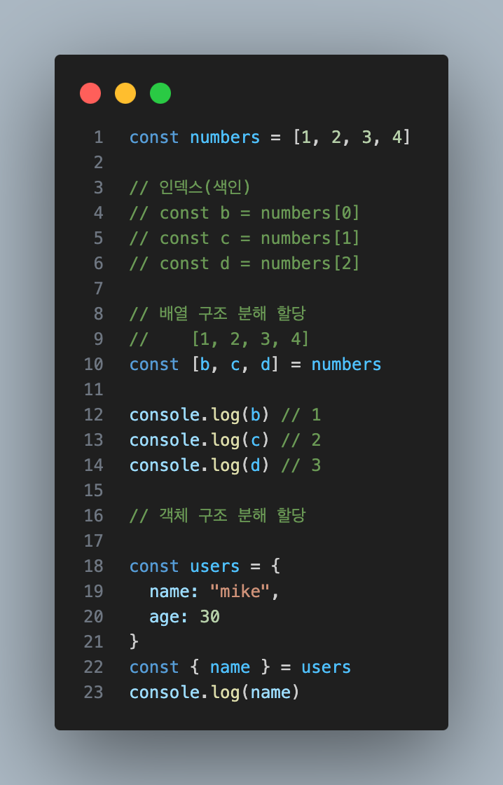왜 [ ]를 사용할까 ? 구조 분해 할당 !