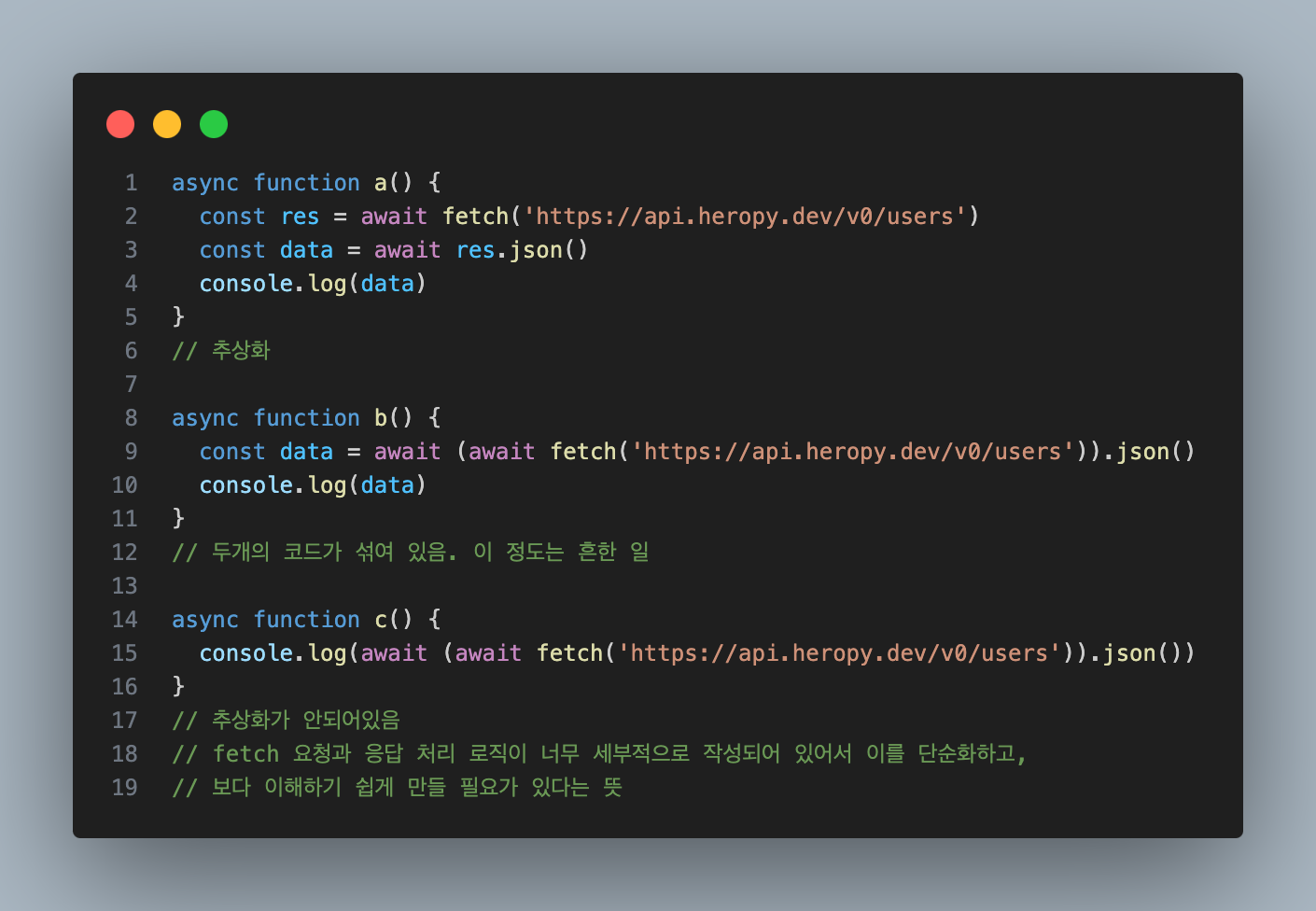 추상화의 장점: 가독성 향상, 재사용성 증가, 유지 보수 용이