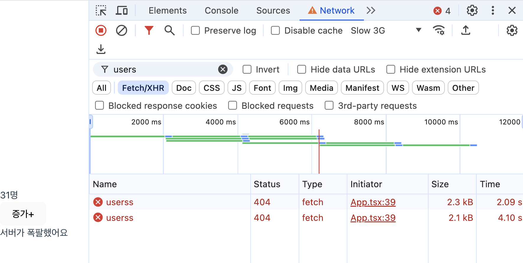 getUsers 함수를 사용하여 데이터를 가져오는데,