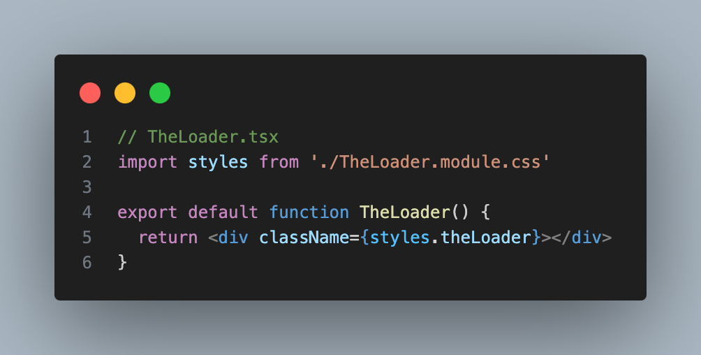 TheLoader 컴포넌트는 styles.theLoader 클래스를 가진 <div> 요소를 렌더링하는데,