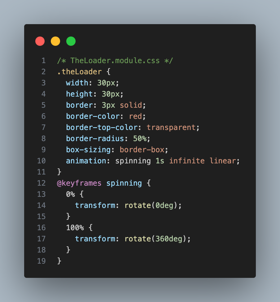 className={styles.theLoader}는 css 모듈에서 정의된 theLoader 클래스를 적용함