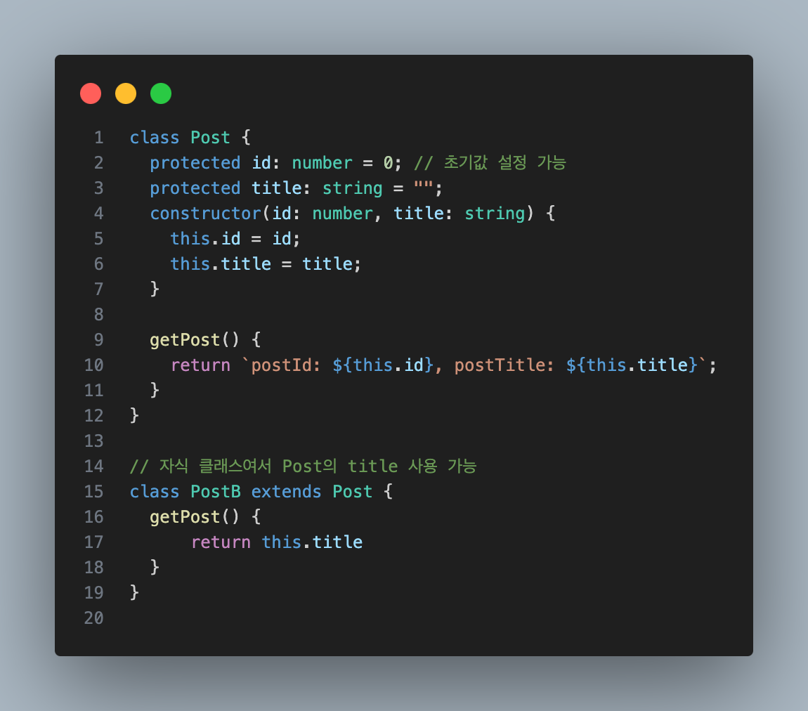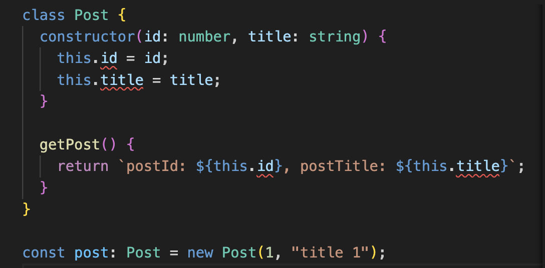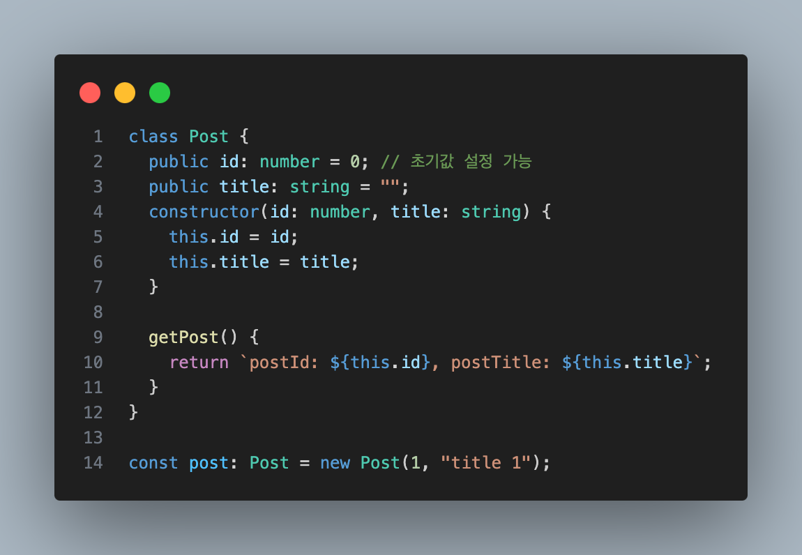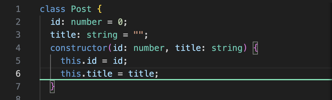 --> 타입스크립트에서는 this로 접근하는 속성들을 위한 type을 class body에 넣어줘야 함