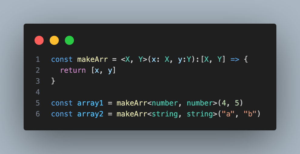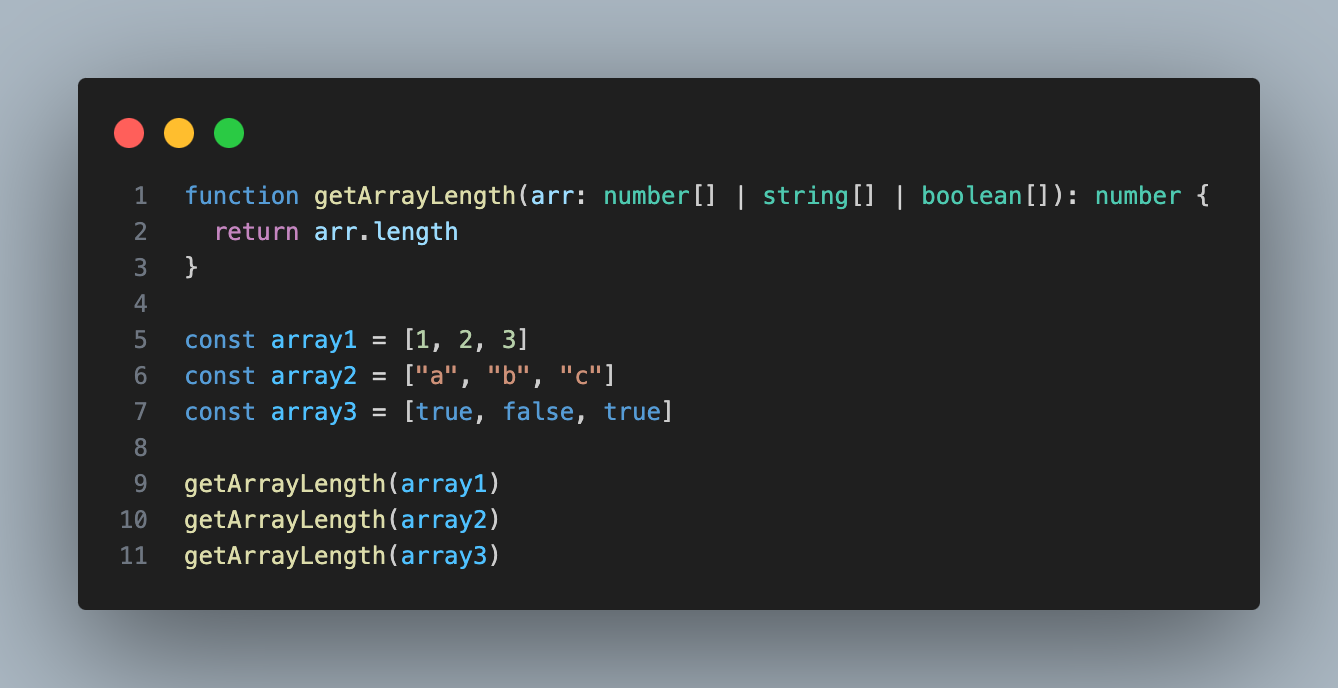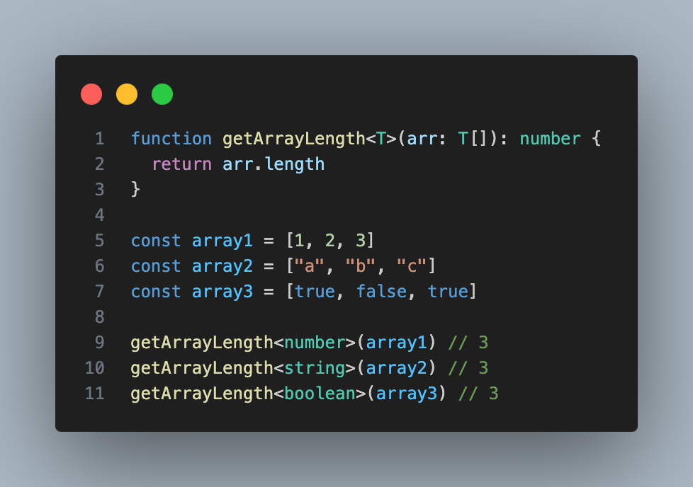getArrayLength<number>(array1); // T는 number로 대체됩니다.