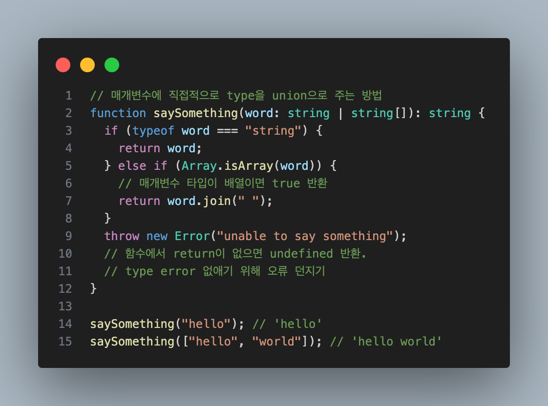 1. 매개변수에 직접적으로 type을 union으로 주는 방법