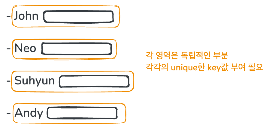 --> 반복되는 코드인데 name이라는 단일 데이터를 넣어주는 것은 말이 안됨 (각 영역은 독립적인 부분인데 이름 데이터는 1개인 상황)