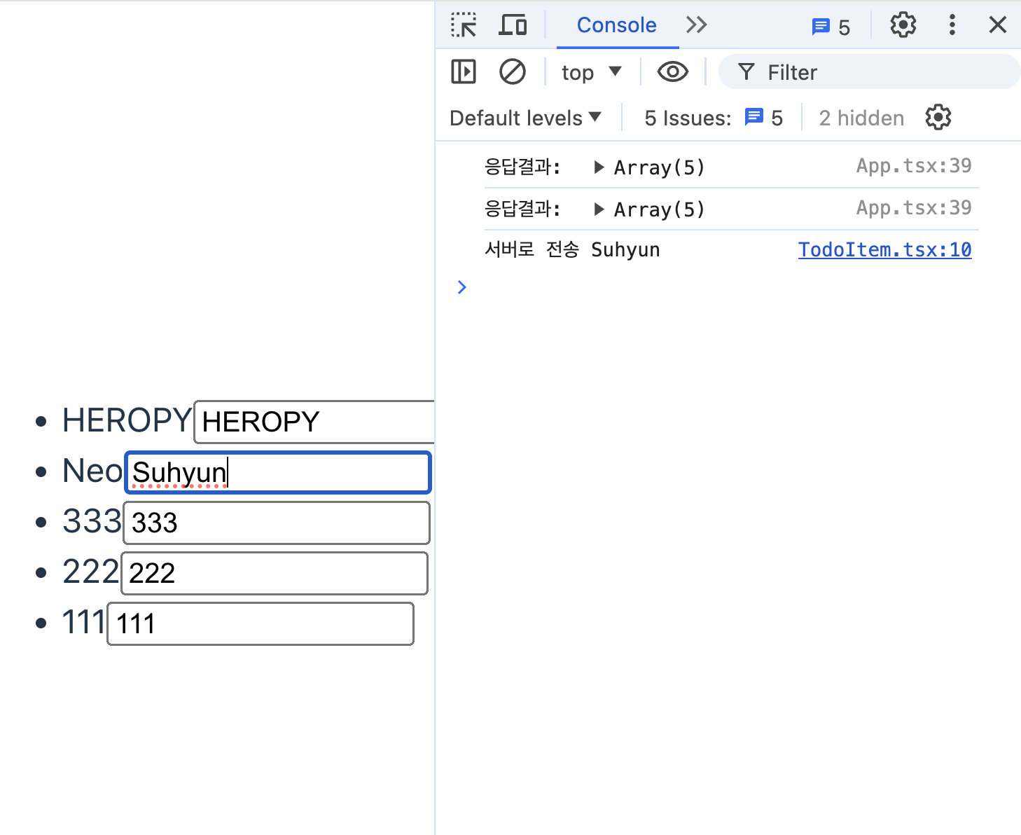 • console.log('서버로 전송', title): 콘솔에 “서버로 전송”과 현재 title 값을 출력