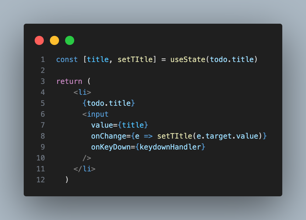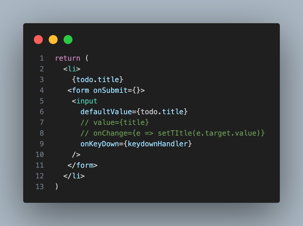 • 예제 2에서 defaultValue={todo.title}가 이를 나타냅니다.