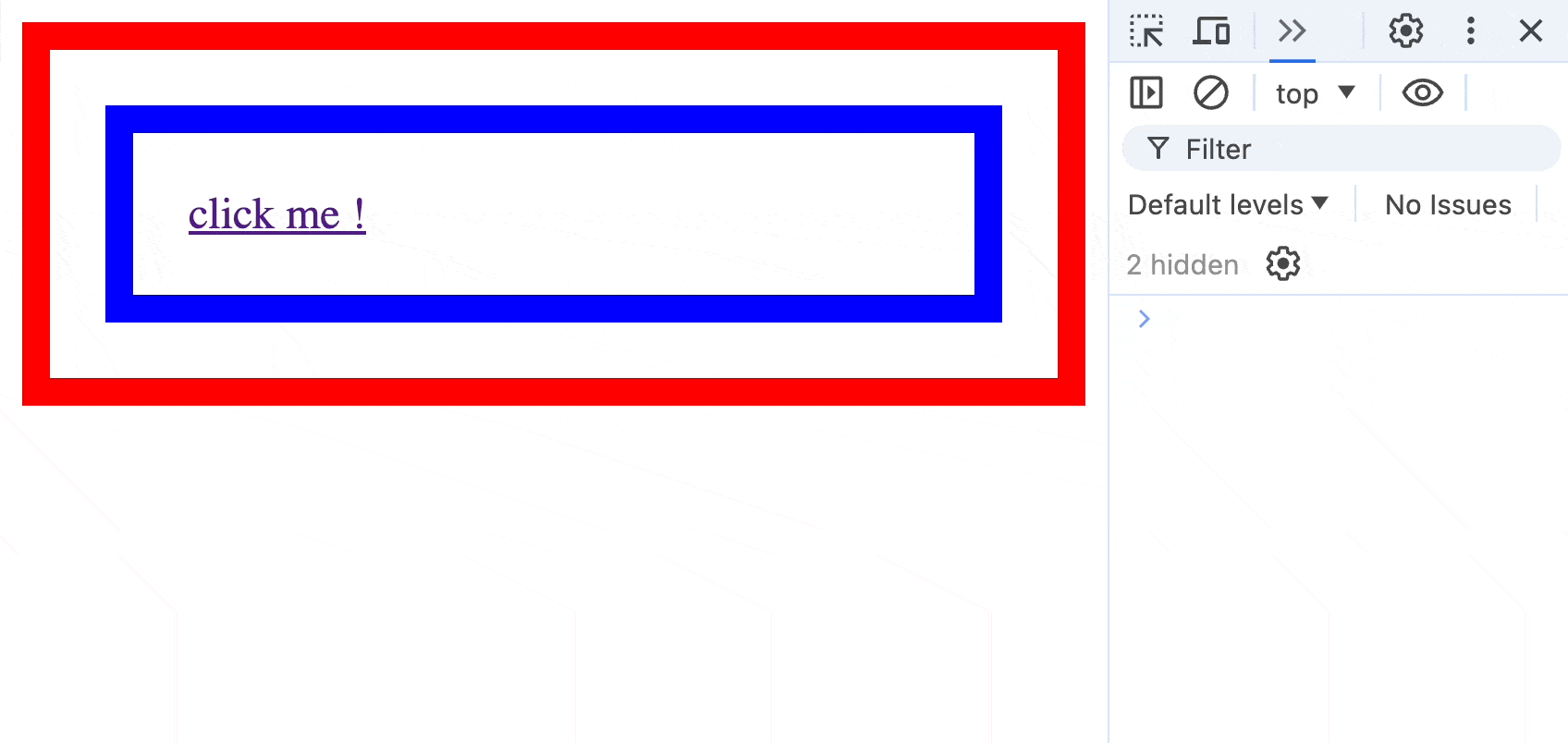 --> a 태그 부분을 클릭하면 'a!'가 출력되는 것은 당연함