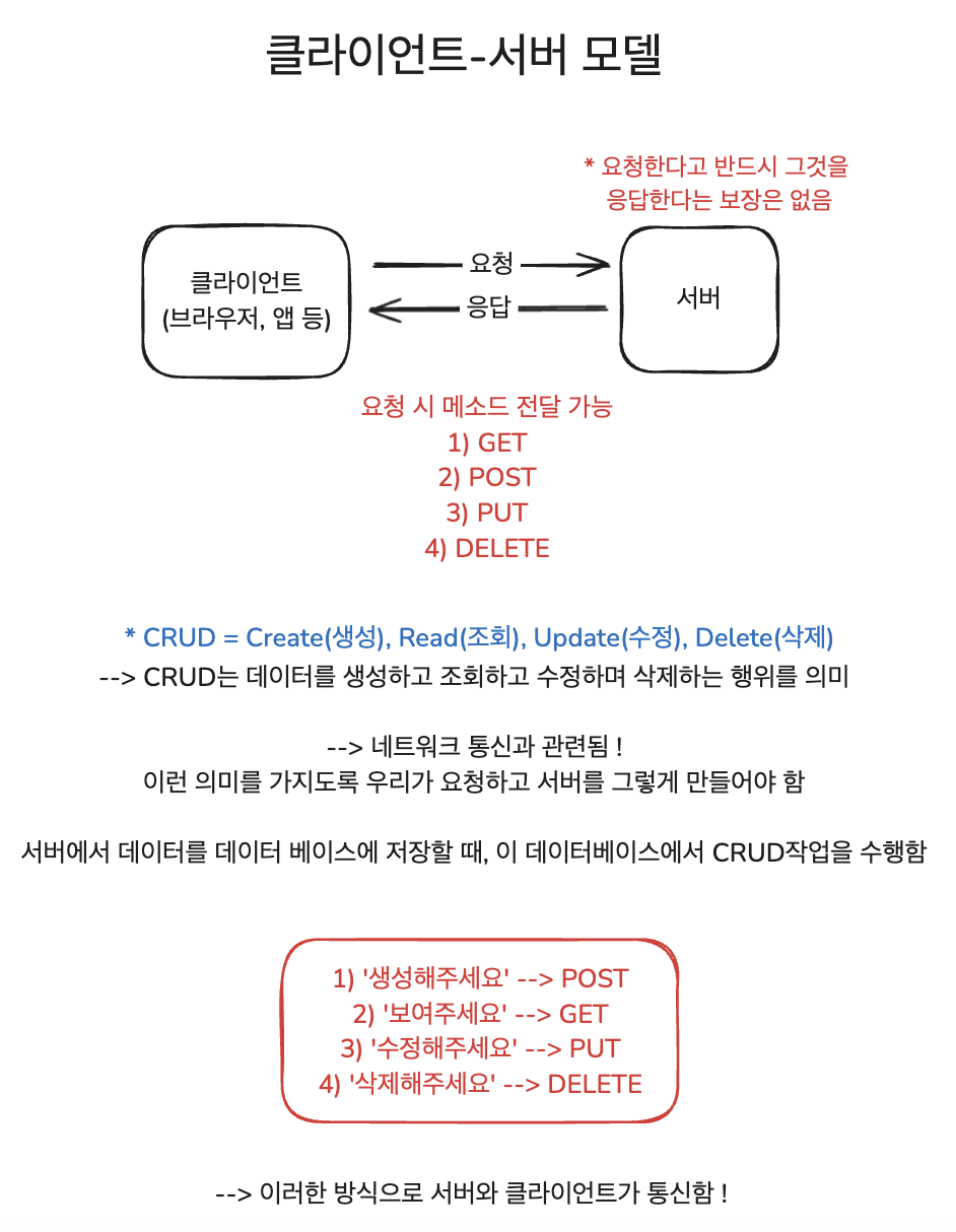 클라이언트는 서버에 요청을 보내고, 서버는 요청된 데이터를 응답으로 반환함.