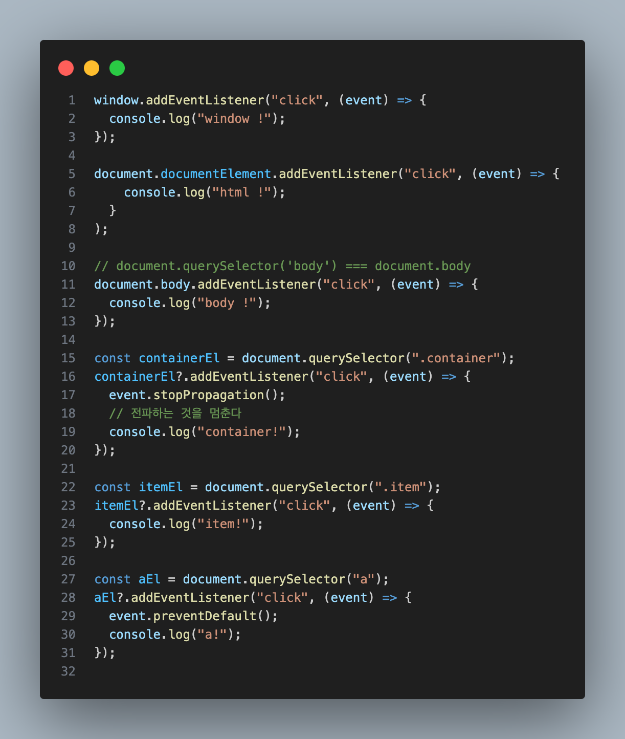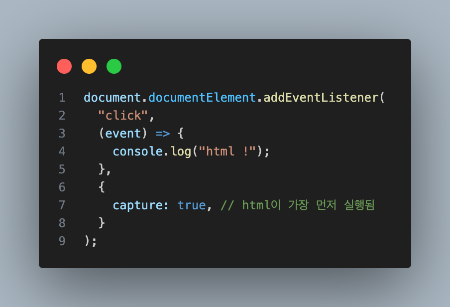 , { capture: true, // html이 가장 먼저 실행됨 }