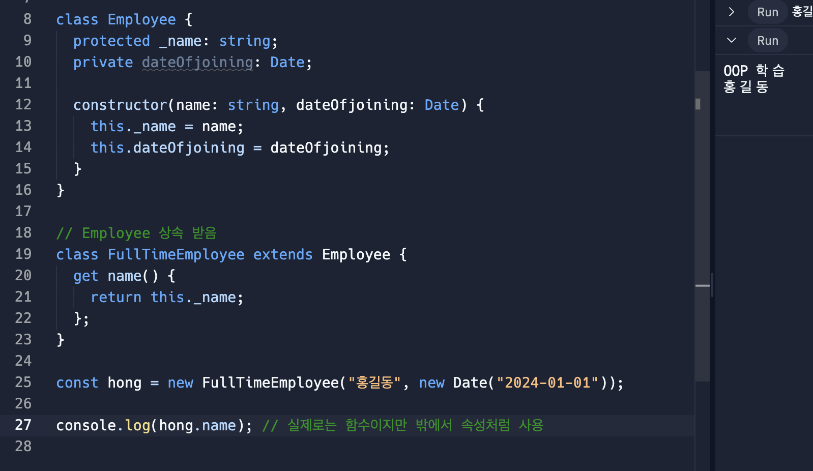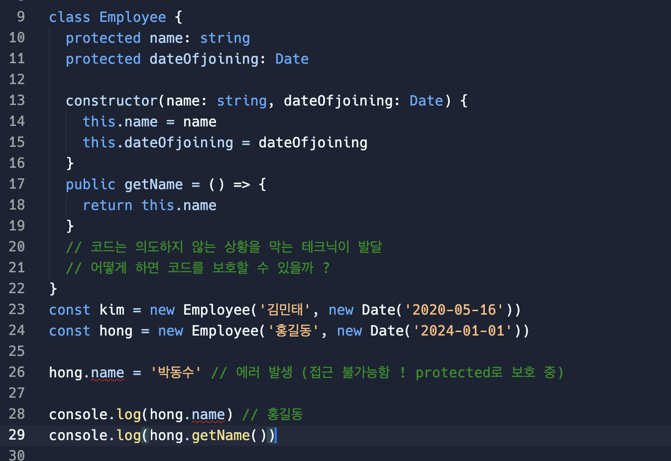 name은 접근 가능하지만 datdOfjoining에는 접근 불가