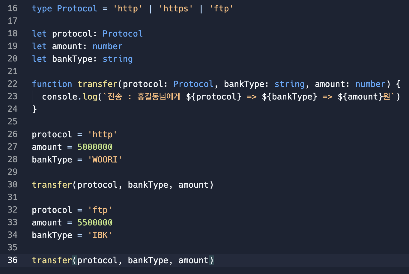 예제: 월급을 전송하는 알고리즘을 작성 (은행, 전송 방식, 금액)