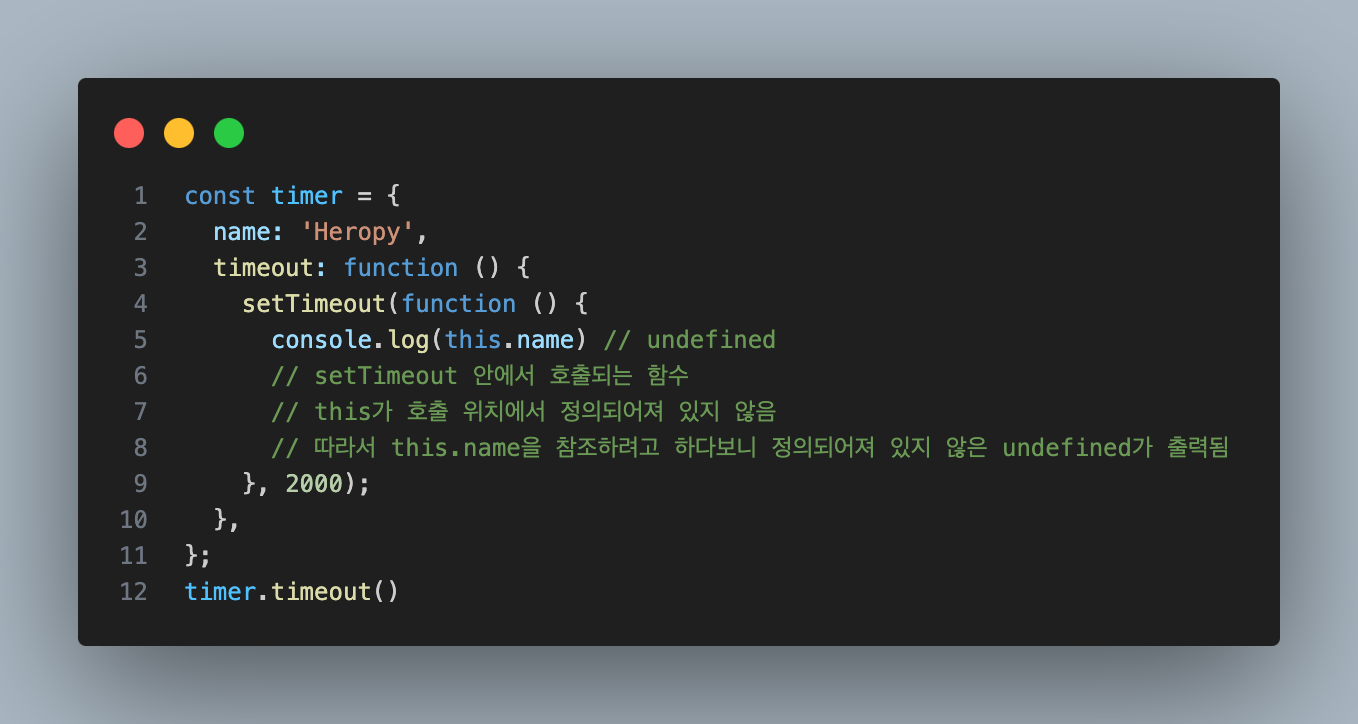 --> 일반함수는 '호출 위치' 화살표 함수는 '선언된 함수 범위'가 중요함 !