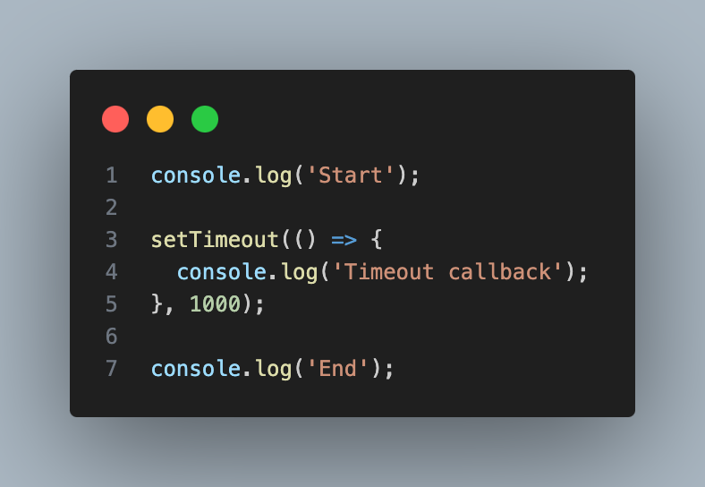 setTimeout(() => { console.log('This will run after 2 seconds'); }, 2000); // 0초가 기본 값