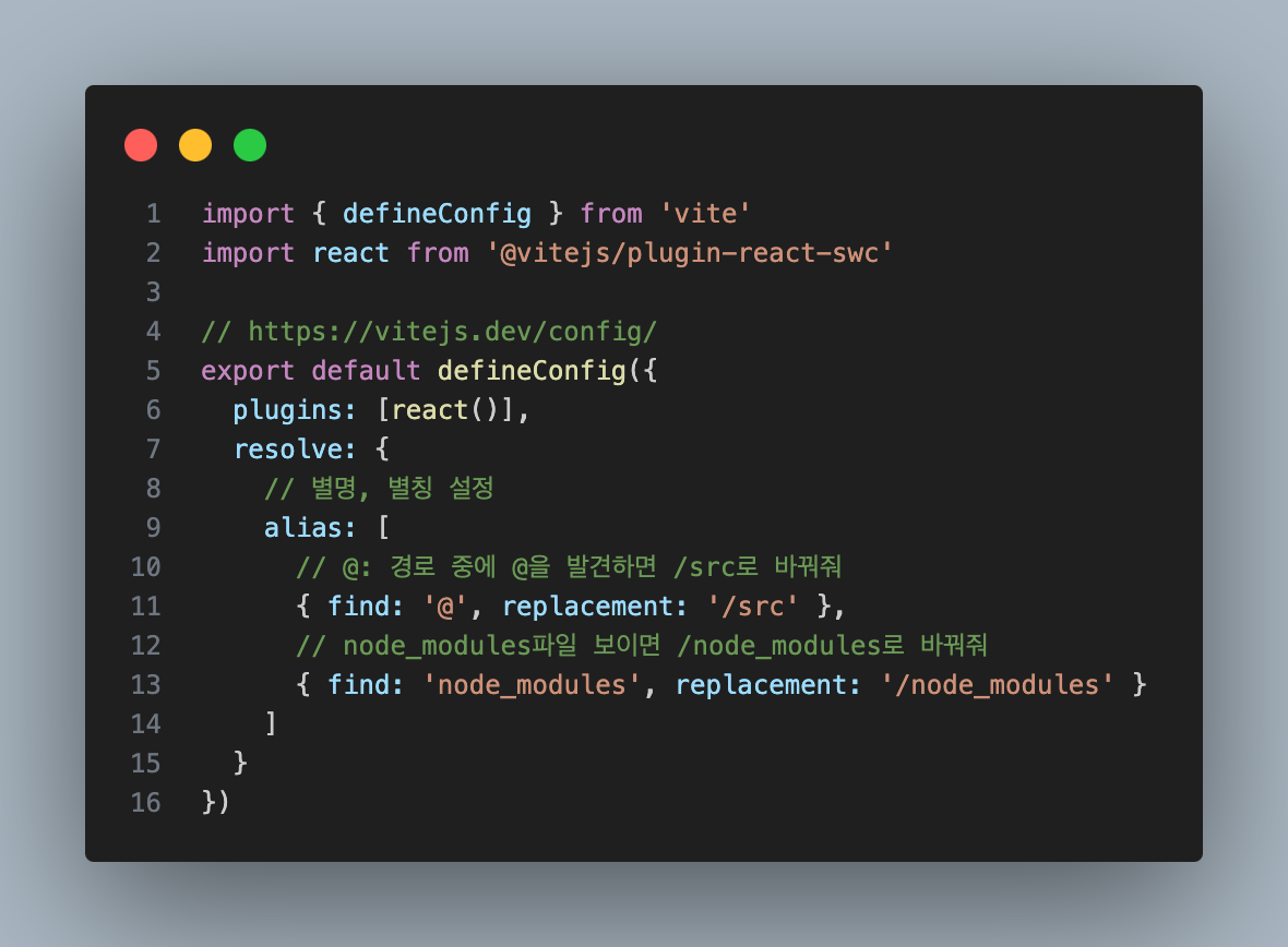 --> import 절대경로 설정 --> vite로 !