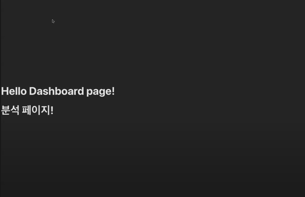 2. 기본 라우팅(별개의 객체로 설정해주는 방식) dashboard 페이지에 접속해도 '분석 페이지 !' 표시 되지 않음