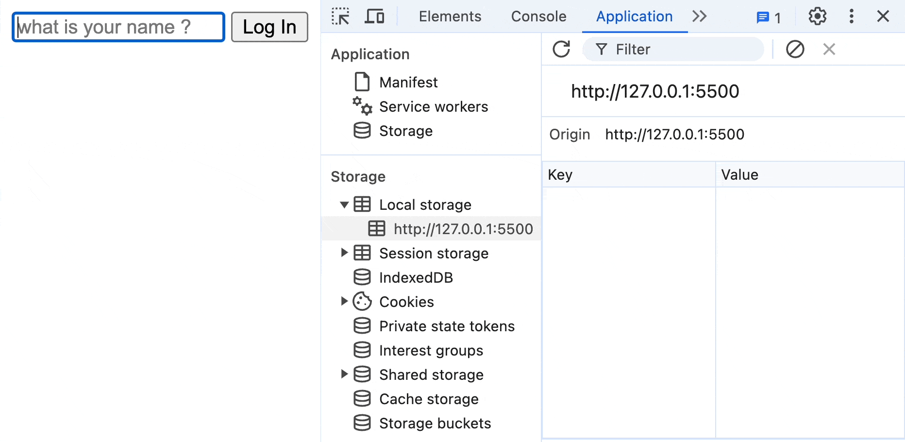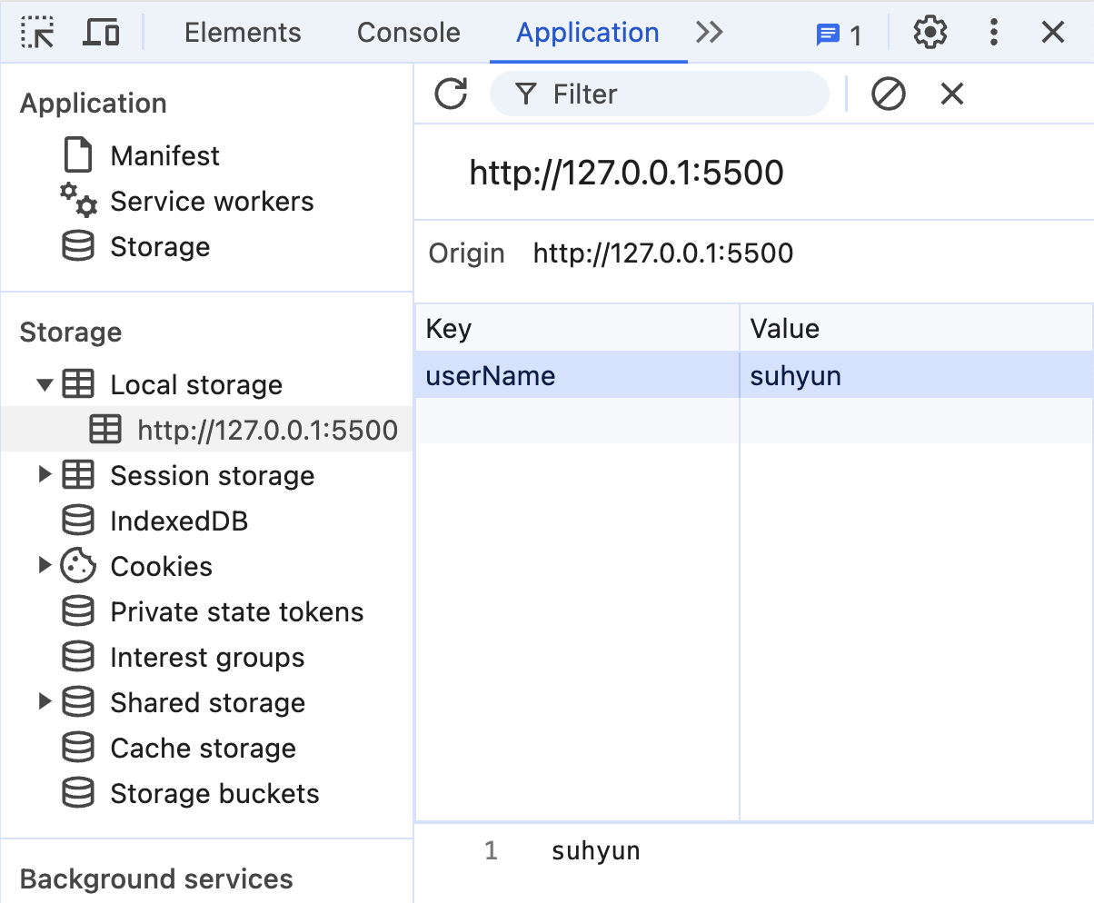 💡 local storage는 브라우저에 무엇인가를 저장할 수 있다. 정보를 저장하고 불러오고 삭제하는 브라우저의 작은 DB 같은 API ! 개발자도구의 application에서 볼 수 있다. local storage에 없는 값을 불러오려고 하면 null이 나온다.