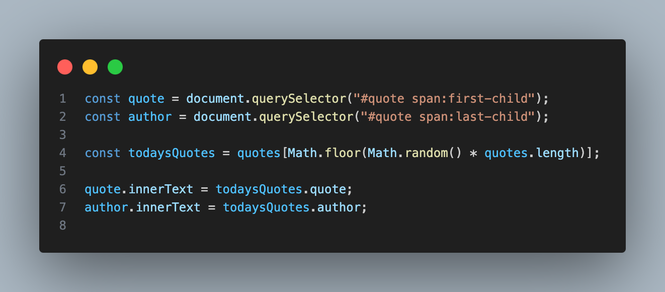 배경 이미지와 맨 밑의 명언은 배열 안에 미리 여러 개를 저장해두고 랜덤으로 뜰 수 있게 구현해보았다.