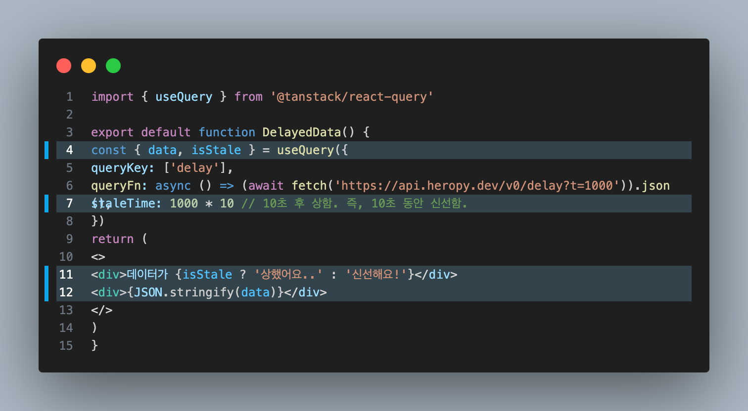 TanStack Query는 캐시한 데이터를 신선(Fresh)하거나 상한(Stale) 상태로 구분해 관리함