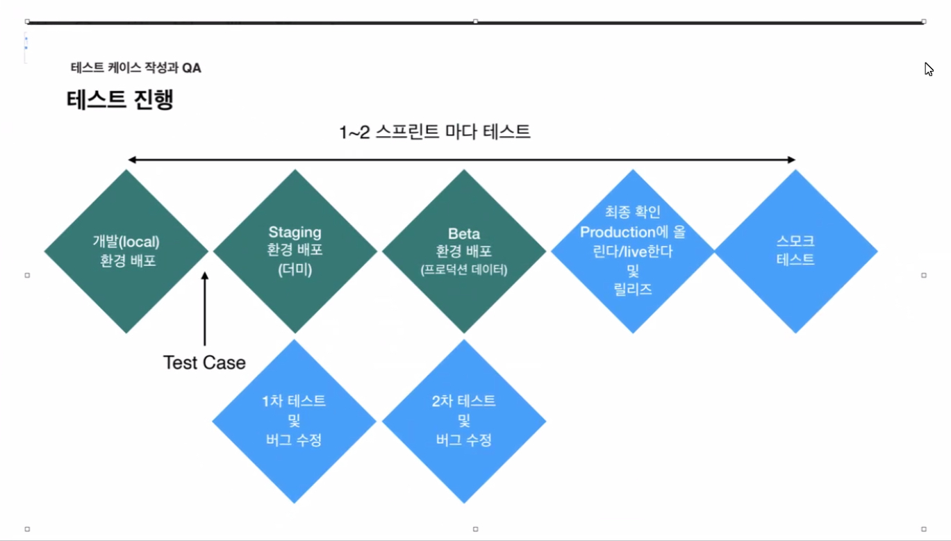 스모크 테스트: PM이 진행, 결제나 회원가입 중 중요한 기능 테스트