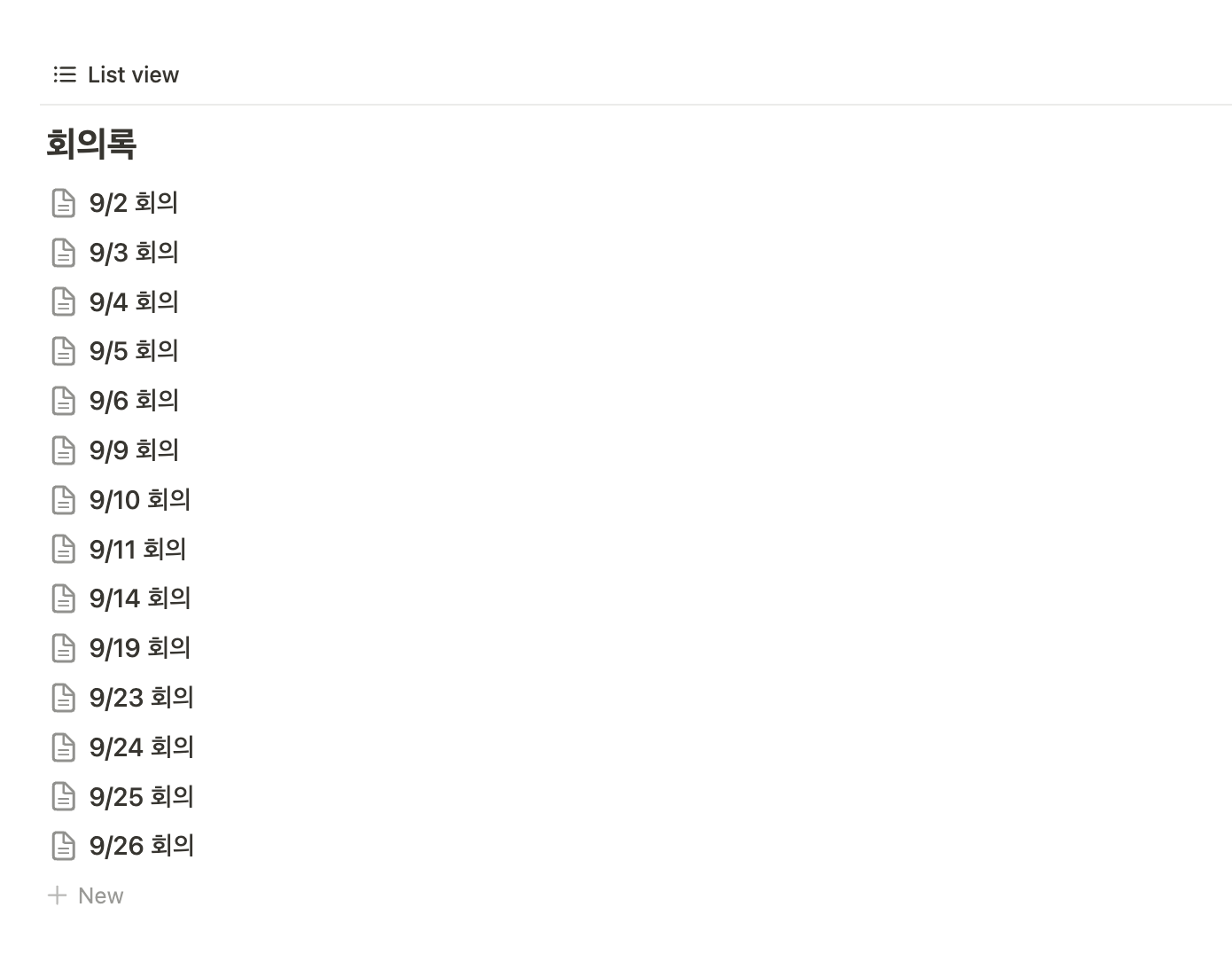 진행상황 공유와 회의에서 결정된 내용을 명확히 해두기 위해서 매 정기회의마다 회의록을 작성하였습니다.
