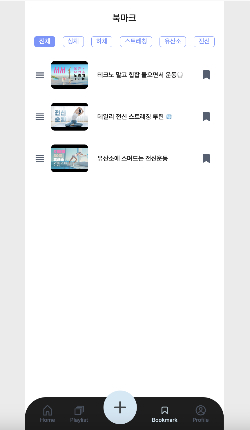 북마크 페이지는 연지님이 작업해주셨습니다. 특히 드롭앤 드롭 기능과 북마크 기능, 토스트 기능은 여러 페이지를 연결하는 것이라 까다로운 작업인데 성공적으로 수행해주셨습니다.