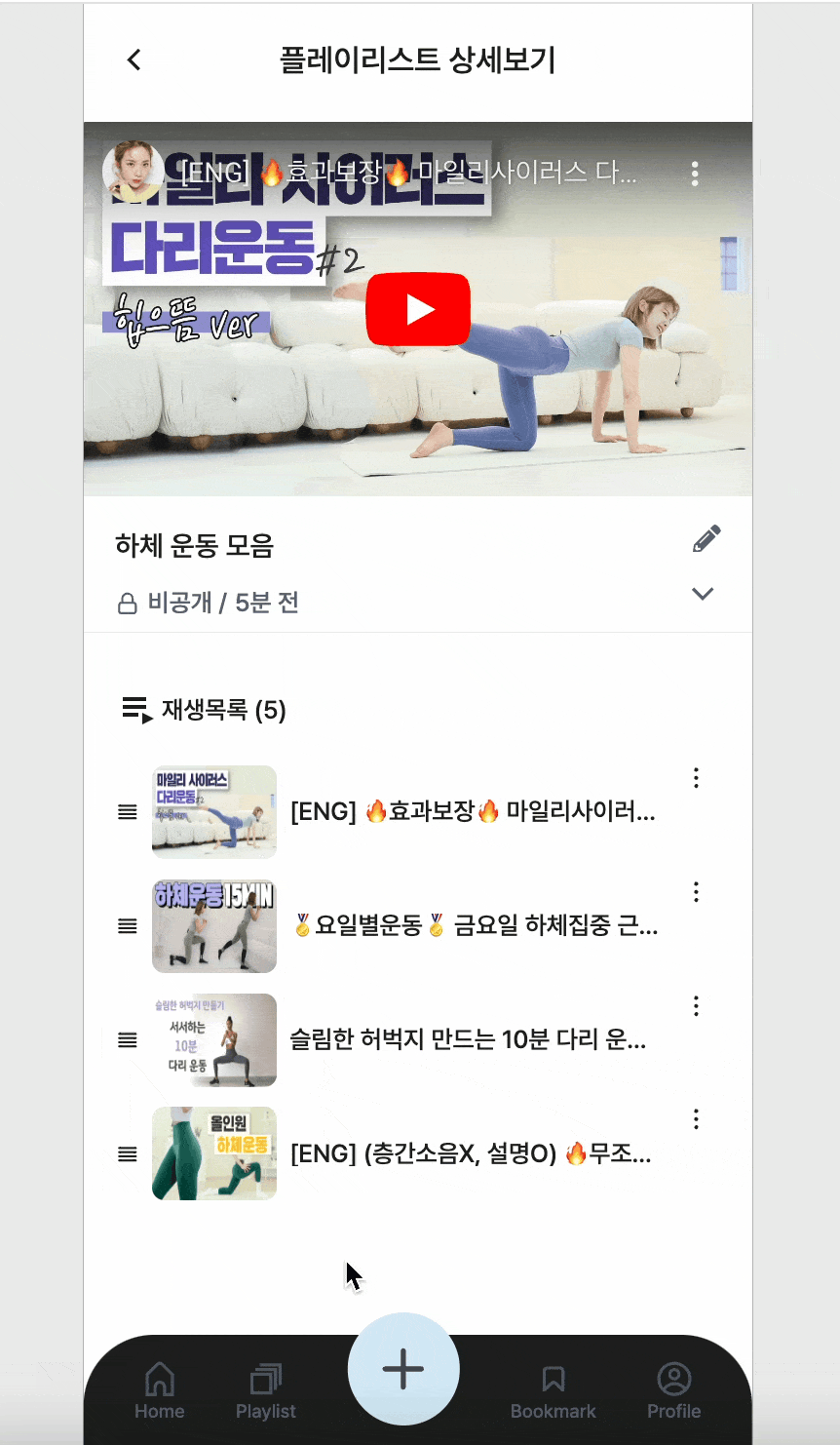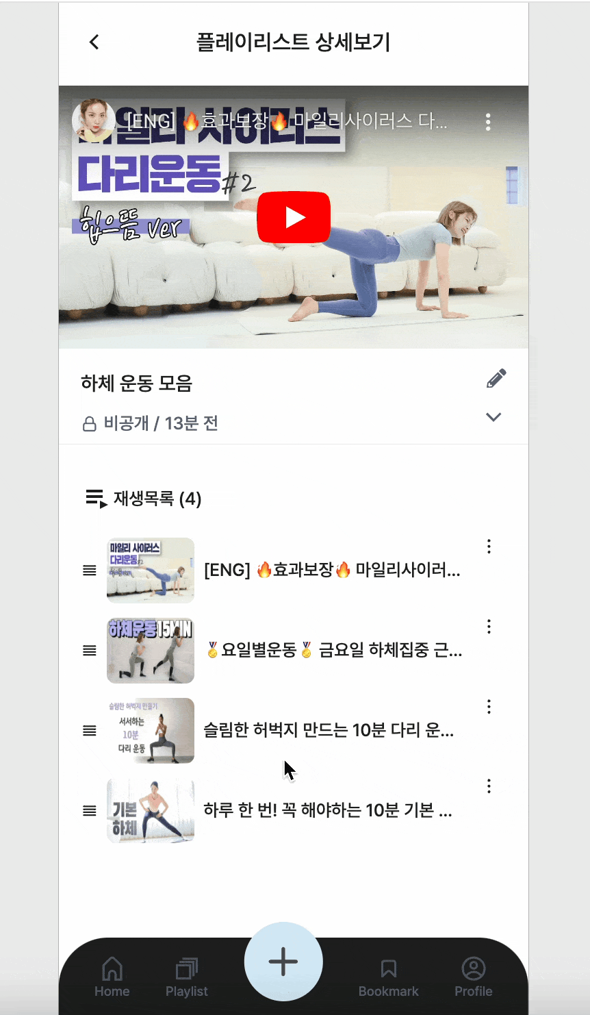 플레이리스트 상세 페이지는 영상 시청이 가능하며 내가 만든 플레이리스트를 편집할 수 있는 페이지입니다.